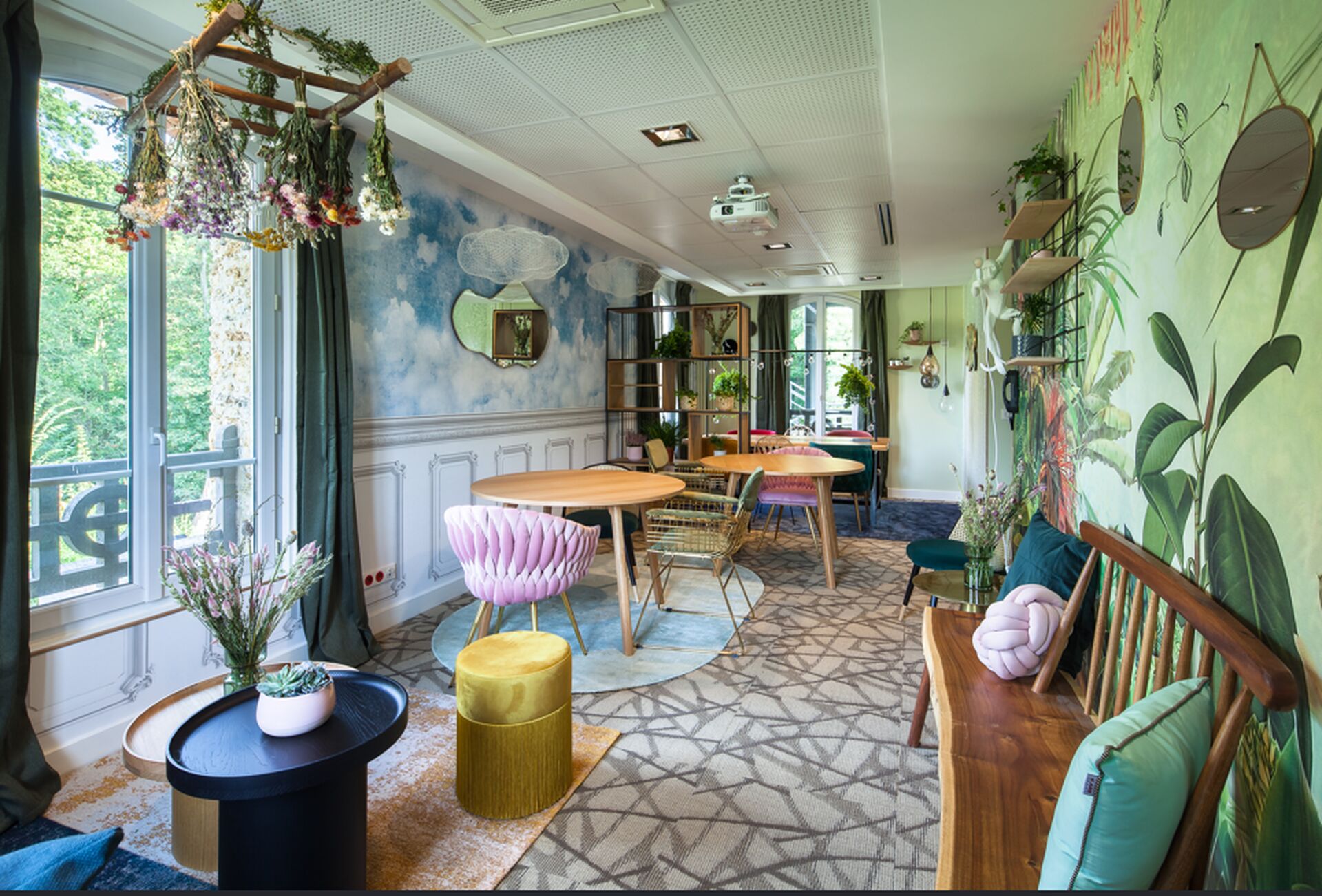 Un esprit de jardin fleuri favorisant l’échange et la créativité. Capacité jusqu’à 20 personnes en format pavé ou 40 personnes en format théâtre, avec terrasse extérieure.